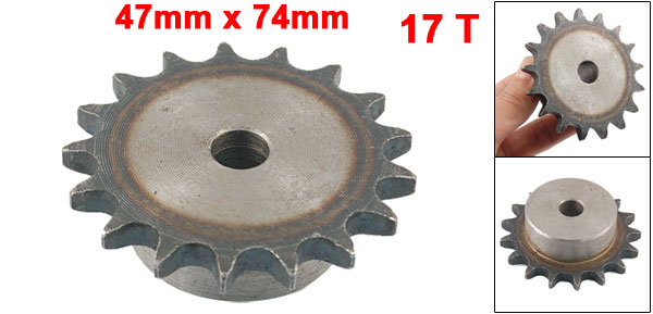 Product Name Chain Drive Sprocket Material Metal Teeth Number 17 Pitch 13.5mm/0.53'' Upper Diameter 74mm/2.91'' Bottom Diameter 47mm/1.85'' Bore Diameter 12mm/0.47'' Total Height 23mm/0.9'' Net Weight 367g Package Content 1 x Chain Drive Sprocket - Reviews