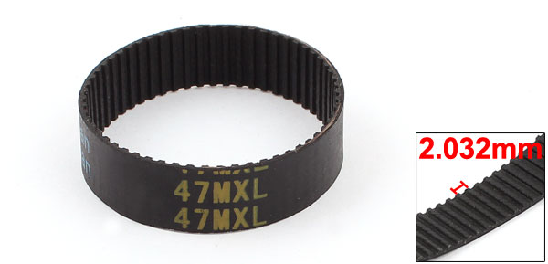 Product Name Timing Belt Model 47MXL Number of Teeth 59 Pitch 2.032mm / 0.08" Tooth Height 0.51mm / 0.02" Tooth Width 1.14mm / 0.04" Belt Width 10mm / 0.4" Belt Girth 119.8mm/ 0.4Ft/ 4.7" Total Height 1.14mm/0.04" Belt Material Neoprene (Synthetic Rubber) Core Wire Material Glass Fiber Color Black Net Weight 3g Package Content 1 x Timing Belt - Reviews
