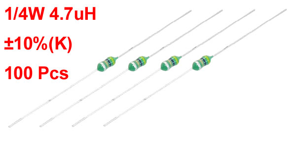 4.7uH Inductance 1/4W Axial Lead 4 Color Ring Fixed Inductors 100Pcs