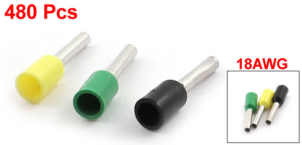 480Pcs E1008 18AWG Yellow Green Black Tube Type Insulated Cable Ends Connectors