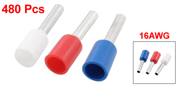 480Pcs E1508 16AWG White Red Blue Tube Type Insulated Cable Ends Connectors