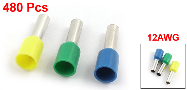 480Pcs E4009 12AWG Green Blue Yellow Tube Type Insulated Cable Ends Connectors