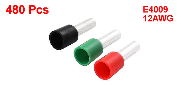 480Pcs E4009 12AWG Green Red Black Tube Type Insulated Cable Ends Connectors