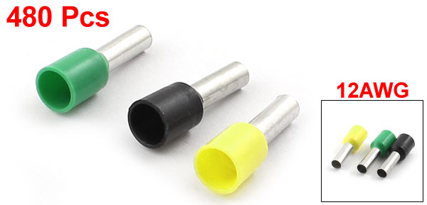 480Pcs E4009 12AWG Green Yellow Black Tube Type Insulated Cable Ends Connectors