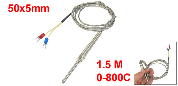 4.9FT 1.5 Meters E Type 50x5mm 0-800 Degree Celsius Thermocouple Probe Sensors