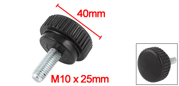 Product Name Straight Knurled Knob Type Screw On Head Diameter 40mm / 1.6" Thread Size 10 x 25mm / 0.4" x 1"(D*L) Total Height 49mm / 1.9" Material Metal, Plastic Color Silver Tone, Black Total Weight 58g Package Content 1 x Straight Knurled Knob - Reviews