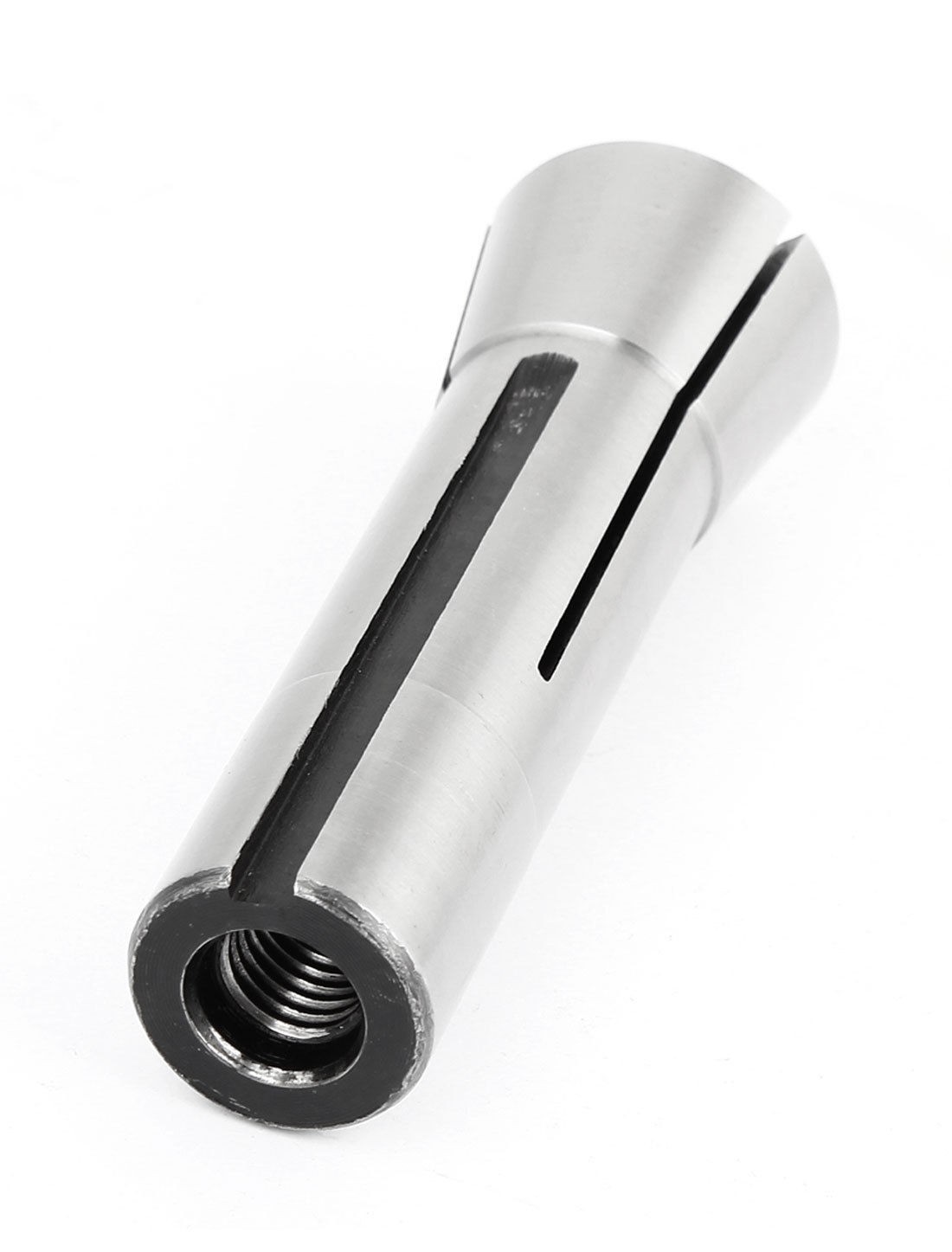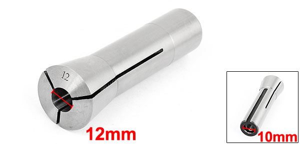 Product Name R8 Spring Collets Main Material Metal Color Black, Silver Tone Style R8 Interior Hole Diameter 12mm/ 15/32" Thread Diameter 10mm/ 25/64" Exterior Diameter Small: 24mm/ 0.94" & Big: 32mm/ 1.26" Total Height 10.2cm/ 4" Weight 314g Package Content 1 x R8 Spring Collets