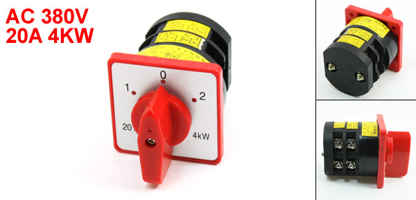 Product Name Changeover Switch Model No. HZ5-20/4 Working Voltage AC 380V Ith 20A Power 4KW Contact Type ON-OFF-ON 4PDT Position Number 3 Installing Holes Dia(Approx) 0.4cm / 0.16" Installing Holes Center Distance(Approx) 4.5 x 4.5cm/1.8" x 1.8"(L*W) Overall Size(Approx) 6 x 6 x 8.5cm/2.4" x 2.4" x 3.35"(L*W*H) External Material Plastic, Metal Color Grey, Red, Black, Silver Tone Net Weight 178g Package Content 1 x Changeover Switch - Reviews