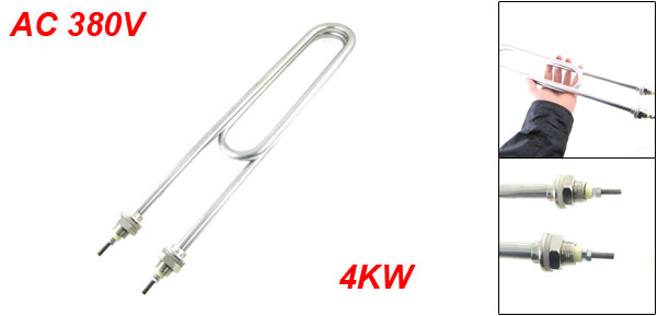 Product Name Electric Heating Tube Design Bend U Shape Material Stainless Steel Rated Voltage AC 380V Power 4KW Bar Diameter 12mm / 0.47" Heater Size (Approx.) 41 x 6.8cm / 16" x 2.7" (L*W) Thread Diameter 17mm / 0.67" ; 4.5mm / 0.177" Color Silver Tone Weight 736g Package Content 1 x U Shaped Electric Heating Tube - Reviews