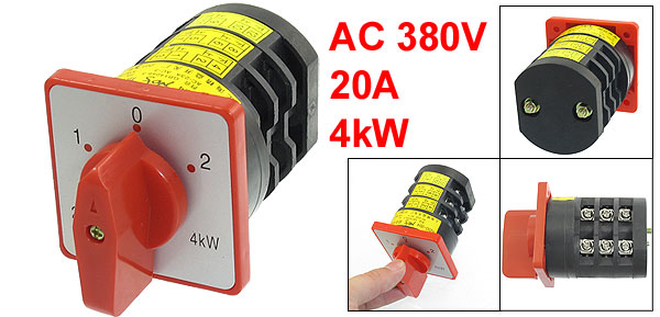 Power 4kW Positions 3 Positions(20A-1-0-2-4kW) Terminal Number 12 Screw Terminals Body Diameter 56mm / 2.2" Overall Size 60.5 x 60.5 x 95mm / 2.38" x 2.38" x 3.7"(L*W*H) External Material Plastic Net Weight 223g Package Content 1 x Universal Changeover Switch