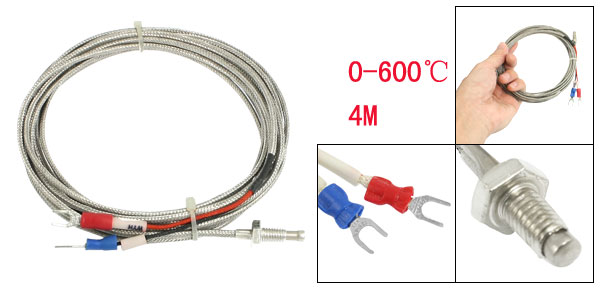 Product Name Thermocouple Type K Type, Screw Type Temperature Range 0-600C Thread Diameter 6mm / 0.24" Fork Terminal Spacing 4mm / 0.16" Probe Length 26mm/ 1.02" Cable Length 4M/ 157" Color Silver Tone, White Net Weight 55g Package Content 1 x Screw Thermocouple - Reviews