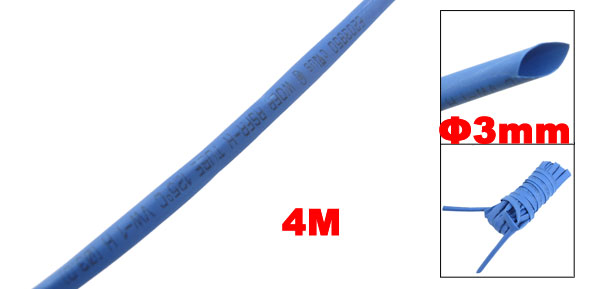4M 13.1 Ft Long 3mm Dia. Blue Polyolefin Heat Shrinkable Tube
