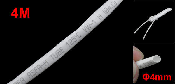 4M 13.1 Ft Long 4mm Dia. White Polyolefin Heat Shrinkable Tube