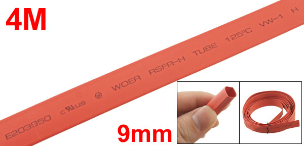 4m 13.1ft 9mm Dia. Heat Shrinkable Tube Shrink Red