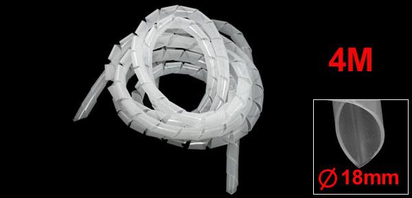 Product Name Spiral Wrap Material Polyethylene Color White Total Length(Approx.) 4M / 13Ft Outside Diameter 18mm / 0.7'' Thickness 1mm / 0.4'' Weight 160g Package Content 1 x Spiral Wrap - Reviews