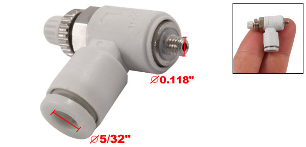 Product Name Pneumatic Speed Controller Fit Tube 4mm / 5/32"(0.157") Male Thread OD M3 (5mm / 0.118") Overall Size 22 x 9.6 x 27mm / 0.87" x 0.38" x 1.1"(L*W*H) Material Plastic, Metal Color As Picture Show Weight 7g Package Content 1 x Pneumatic Speed Controller - Reviews