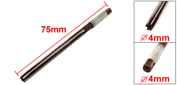 Product Name Hand Reamer Material HSS Flute Number 6 Cutting Diameter 4mm/ 0.16" Cutting Depth 49mm/ 1.9" Shank Diameter 4mm/ 0.16" Square End Size 3.5 x 3.5mm/ 0.14" x 0.14"(L*W) Total Length 75mm/ 3" Color Brown, Silver Tone Weight 6g Package Content 1 x Hand Reamer - Reviews