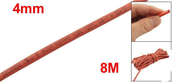 4mm Dia. Heat Shrinkable Tube Shrink Tubing 8M 26.2FT Red