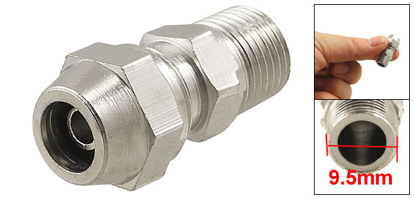 Product Name Quick Coupler Male Thread Diameter 9.5mm / 0.37" Fit Tube Outside Dia. 4mm / 0.16" Overall Size 25 x 12mm / 1" x 0.5"(L*Max.D) Color Silver Tone Material Chrome Plated Solid Brass Weight 10g Package Content 1 x Quick Coupler - Reviews
