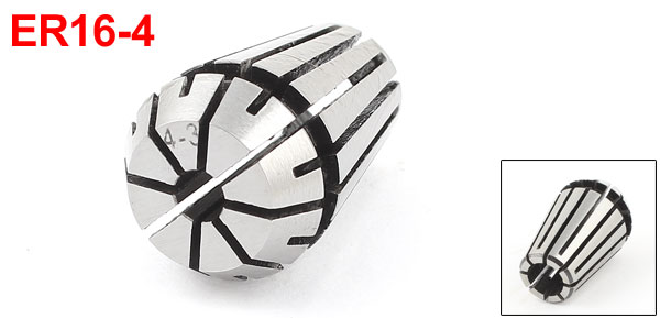 Details4mm ER16 Series Spring Collet Chuck CNC Milling Lathe Tool Bit Holder  Product Name Spring Collet Model No. ER16-4 Gripping Diameter 4mm Overall Size 17 x 27.5mm / 0.67" x 1.1" (Max.D*H) Material Spring Steel Color Silver Tone Net Weight 20g Package Content 1 x Spring Collet