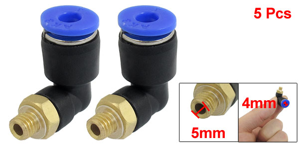 4mm Hole 5mm Threaded Pneumatic Quick Fitting Joint Connector 5PCS