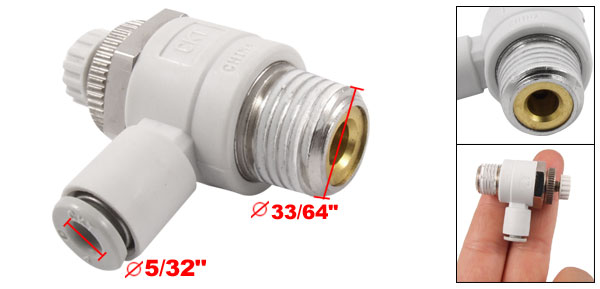 Product Name Pneumatic Speed Controller Fit Tube 4mm / 5/32"(0.157") Male Thread OD 13mm / 33/64"(0.512") Overall Size 33 x 18 x 38mm / 1.3" x 0.7" x 1.5"(L*W*H) Material Plastic, Metal Color As Picture Show Weight 35g Package Content 1 x Pneumatic Speed Controller - Reviews