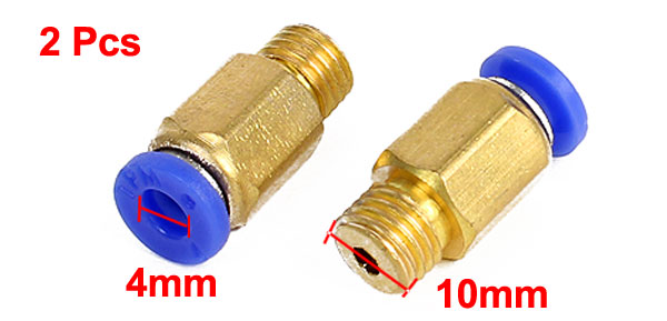 Product Name Pneumatic Quick Fitting Type Straight One Touch Connector 4mm Thread Connector 10mm Material Plastic, Metal Size(Approx.) 2 x 1cm/ 0.8" x 0.4"(L*W) Main Color Blue,Brass Tone Weight 15g Package Content 2 x Pneumatic Quick Fitting - Reviews