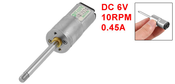 Product Name DC Geared Motor Model Type 16GA Rated Voltage DC 6V Current 0.45A Speed 10RPM Shaft Size 4 x 42mm/ 0.16" x 1.6"(D*H) Body Size 16 x 37mm / 0.63"x 1.5"(Max.D*H) Total Length 79mm / 3.1" Main Color Silver Tone Main Material Metal Weight 28g Package 1 x DC Geared Motor - Reviews