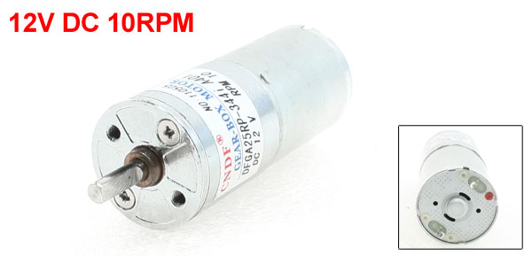 Product Name Geared Motor Rated Voltage 12VDC Speed 10RPM Pin Quantity 2 Shaft Size 4 x 11mm/ 0.16" x 0.43" (D*L) Body Size 25 x 53mm/ 0.98" x 2.1" (Max.D*L) Material Metal, Electronic Parts Weight 95g Package 1 x Geared Motor - Reviews