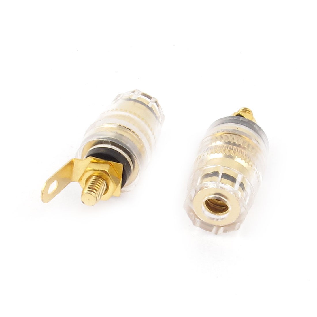 Product Name Binding Post Material Plastic, Copper Color Black, Clear, Gold Tone Thread Diameter 4mm/0.15'' Banana Plug Diameter 4mm/0.16'' Size 33 x 14mm/1.3'' x 0.554'' (L*D) Net Weight 24g Package Content 2 x Speaker Binding Post - Reviews