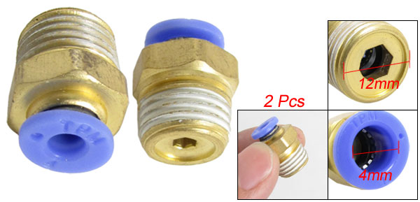 Item Name Quick Fittings Total Size 18 x 14mm/0.7" x 0.5"(L*W) Thread Diameter 12mm/0.472" Inner Diameter (Blue End) 4mm/0.157" Material Chrome Plated Brass & Plastic Color Gold Tone, Blue Weight 24g Package Content 2 x Quick Fittings - Reviews