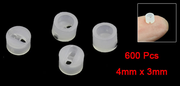 Product Name LED Spacers Quantity 600±2% Inner Hole Dia.(Approx.) 3mm Hole Pitch(Approx.) 2mm Total Size(Approx.) 4 x 3mm/ 0.16" x 0.12" (D*L) Material Nylon Color White Net Weight 18g Package Content 600 x LED Spacers - Reviews