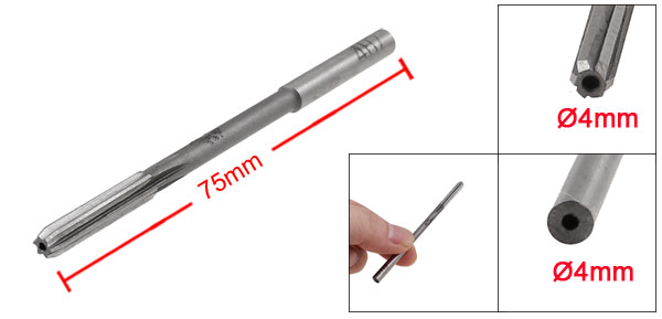 Details4mm x 4mm x 75mm High Speed Steel Straight Shank Machine Reamer Gray  Product Name Machine Reamer Material HSS Flute Number 6 Cutting Diameter 4mm / 0.157" Cutting Depth 20mm / 0.787" Shank Diameter 4mm / 0.157" Total Length 75mm / 2.95" Color Gray Weight 7g Package Content 1 x Machine Reamer