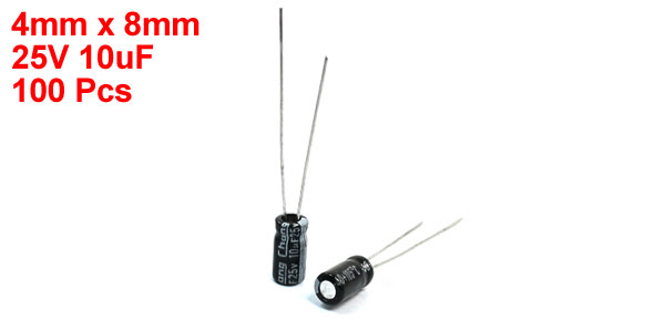 4mm x 8mm Radial Type Aluminum Electrolytic Capacitor 25V 10uF 100 Pcs