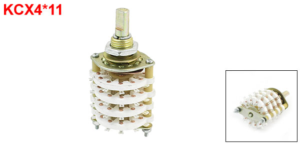 Product Name Rotary Switch Model KCX4*11 Material Metal, Plastic Dimensions(knob not included) 30 x 57mm / 1.2" x 2.2"(Max.D*H) Fit Mounting Hole Diameter 10mm / 0.4" Shaft Diameter 6mm/0.24" Pin Number 48 Contact Type 4 Pole 11 Position Total Weight 36g Package Content 1 x Rotary Switch - Reviews