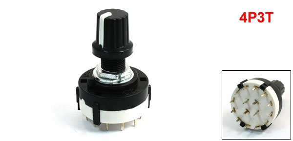 4P3T Single Deck Rotary Switch Band Selector 4Pole 3 Position w Knob