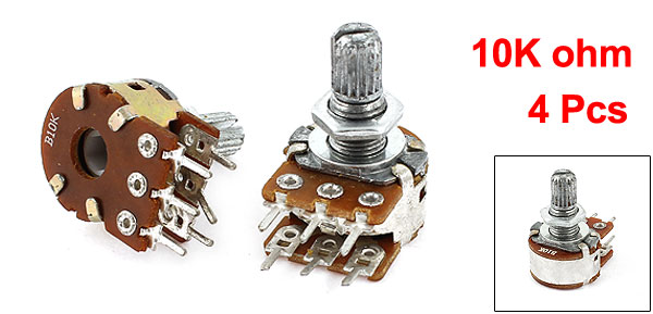 4Pcs 10K Ohm 15mm Shaft Linear Dual Rotary Rotatable Taper Potentiometer