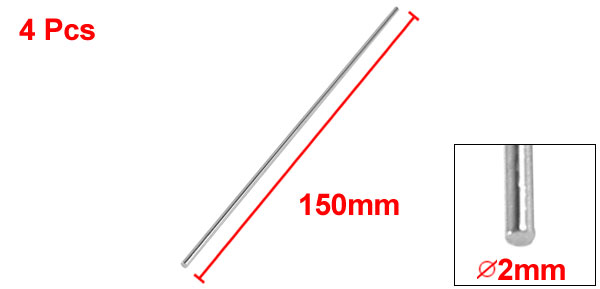 4Pcs 150mm x 2mm Silver Tone Metal Round Rod for RC Aircraft Model