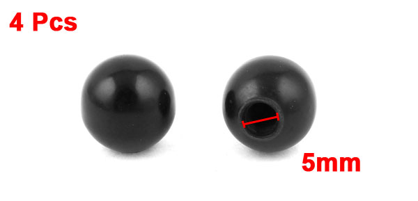 4pcs 16mm Dia Plastic Ball w M5 Threaded Blind Hole Handling Knob Black