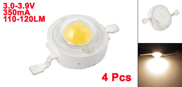 4pcs 1W Power Warm White LED Bright Light Bead Emitter 110-120LM 2900K-3300K