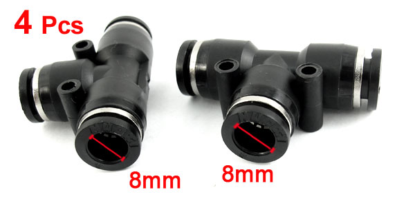 4pcs 3 Way T-shaped 8mm Dia Push in Tube Pneumatic Air Quick Coupler Fitting