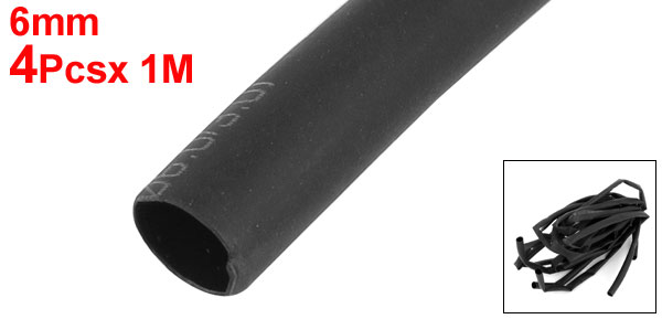 4pcs 3.3Ft 1M Long 6mm Dia Black Polyolefin Heat Shrinkable Tube