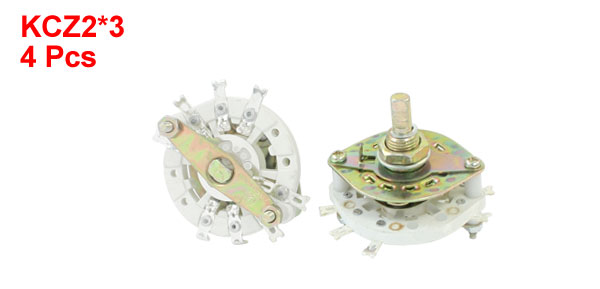 Product Name Rotary Switch Model KCZ2*3 Material Metal, Plastic Dimensions(knob not included) 40 x 45mm / 1.6" x 1.8"(Max.D*H) Fit Mounting Hole Diameter 10mm / 0.4" Shaft Diameter 6mm/0.24" Pin Number 8 Contact Type 2 Pole 3 Position Total Weight 120g Package Content 4 x Rotary Switches - Reviews