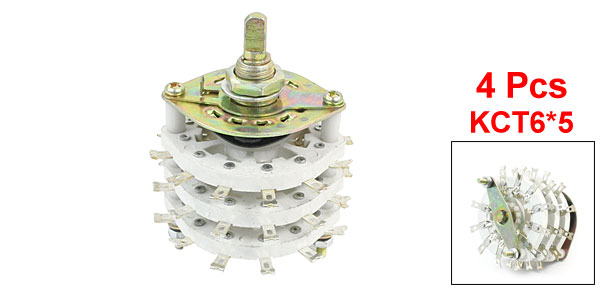 4Pcs 6mm Dia Shaft 6P5T Triple Deck Band Channel Rotary Switch Selector