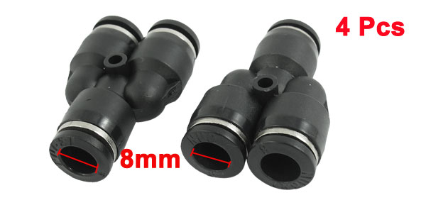 4pcs 8mm to 8mm Y Shaped 3 Ways Quick Joint Air Pneumatic Fitting Black