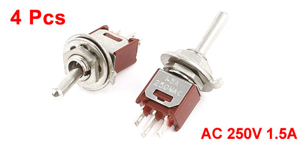 Main Color Red,Sliver Tone Brand DMiotech Terminal Number 3 Country of Manufacture CHINA Type SPDT(Latching) Material Metal, Plastic Product Name Toggle Switch Net Weight 13g Package Content 4 Pcs x Toggle Switches Total Size(Not Included Terminal) 25 x 8 x 8mm/ 1" x 0.32" x 0.32"(L*W*H) Position 3(ON/OFF/ON) Voltage Current AC 250V 1.5A Thread Size 5mm/0.2" - Reviews