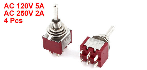 4Pcs AC 250V 2A 120V 5A 6 Pin Terminals ON/Off/ON DPDT Toggle Switches
