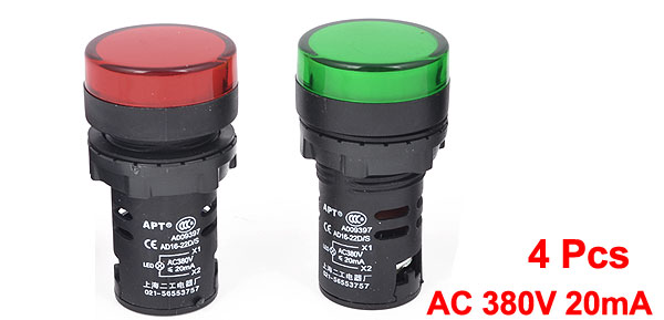 4pcs AC 380V 20mA Red Green LED Accident Electrical Indicator Pilot Lamp