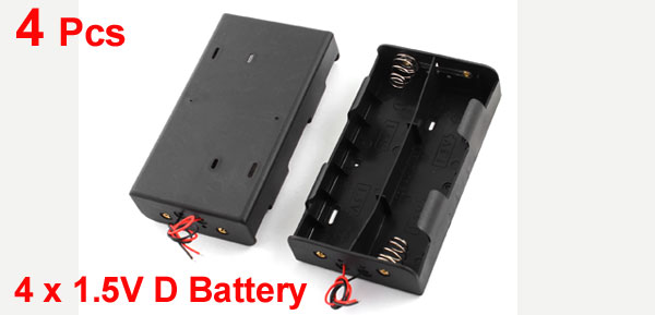 4Pcs Black 4 x 1.5V D Battery Batteries Holder Case w Wire Leads