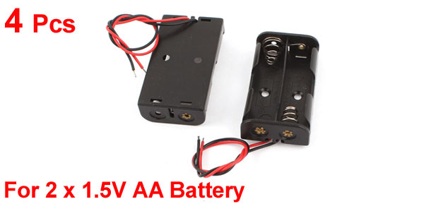Details4Pcs Black Plastic Battery Holders Cases Boxes for 2 x 1.5V AA Batteries  Main Color Black Fit for for 2 x 1.5V AA Battery (not included here) Brand DMiotech Net Weight 39g Country of Manufacture CHINA Package Content 4 x Battery Holder Material Plastic, Metal Cable Length( Each 15cm/6" Dimension 60 x 12 x 5mm/2.4" x 5" x 2"(L*W*H)